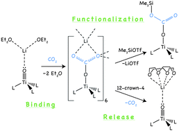 It is shown that the binding of CO2 to a terminal anionic titanium oxide can be reversed chemically, and the isolable carbonate complex can be functionalized with select electrophiles.