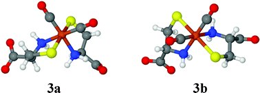 The two major isomers of the CO releasing molecule, [Fe(L-cysteinate)2(CO)2]2¬, have been identified. Only one isomer is isolated for [Fe(SCH2CH{CO2H}NHCH2)2(CO)2], where the two cysteines are linked.