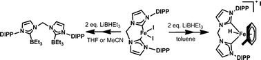 The synthesis of low coordinate iron(II) hydrides ligated by a chelating bis-N-heterocyclic carbene was complicated by competitive reactions with solvent, reductive elimination of H2 and/or dissociation of the ligand.
